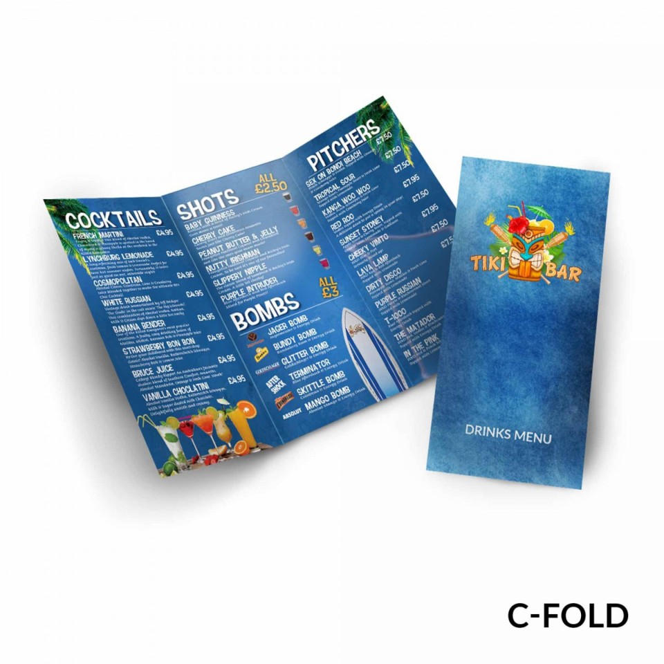 Many restaurants, bars, pubs, cafes and canteens are switching to laminated menus as they can be wiped down and sanitised with a damp cloth. Help prevent the spread of coronavirus and provide reassurance to your staff and customers. Available in a wide choice of different sizes and folds, our laminated folded menus are printed onto sturdy 250gsm or 350gsm silk paper and then coated with either a gloss or matt lamination film. The lamination helps to protect the menus from spills and handling, extending their life and keeping them fresh and vibrant week-in, week-out.