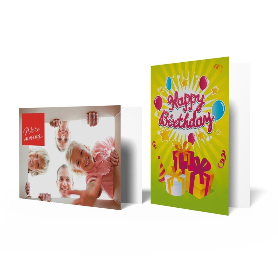 Your artwork will shine on our premium 360mic Greetings Card Stock, featuring a semi-gloss outer that enhances your design and a matt, writable interior that's perfect for personal notes. And if you want to go a step further, you can upgrade to a laminated outer cover for added luxury and protection.