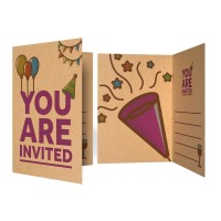 There can be no better way to reveal details of your big event than with these custom printed Kraft invitations. Available in a choice of sizes,they're made from 100% recycled fibres which add a wonderfully handcrafted aesthetic. Whether you're inviting a few friends to an informal gathering or a host of VIPs to the grand opening of a new restaurant,our bespoke printed Kraft invites are sure to grab attention and encourage attendance.