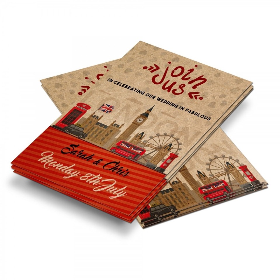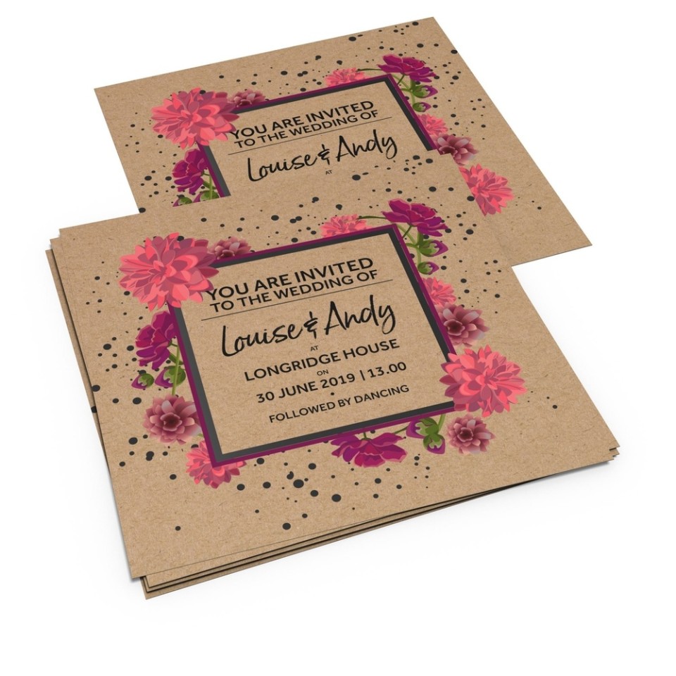 Printed with pride on 100% recycled brown kraft stock, these bespoke wedding invitations are the perfect way to announce your big day while also giving a helpful boost to the environment. Not only eco-friendly but also aesthetically pleasing, they're an ideal complement to retro or rustic themes, thanks to their pared back simplicity and chic styling. We will print your invites in high-resolution colour, to ensure that you get to announce your big day in style.