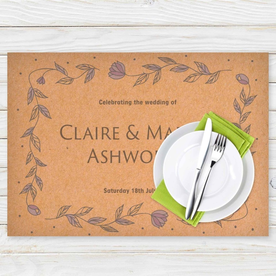 Add a personal touch to your wedding feast with bespoke wedding placemats, custom printed with your design.