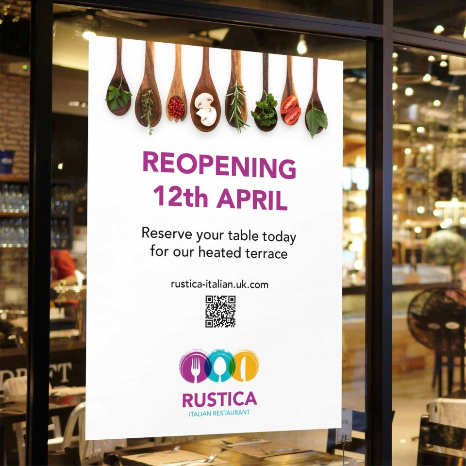 Applied to the outside of the window (the adhesive is on the rear of the sticker), the stickers are printed in vibrant, eye-catching full colour onto 95 micron removable self-adhesive white vinyl. Easy to apply, they can be removed after use without damaging the glass.